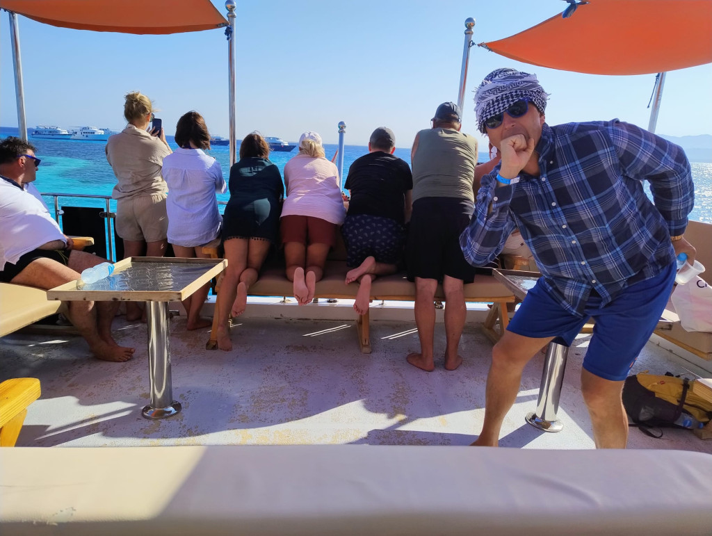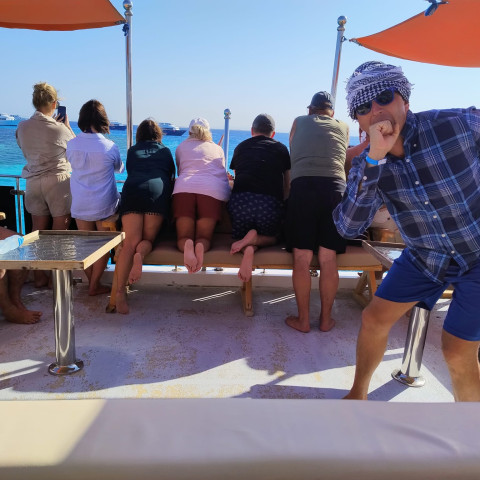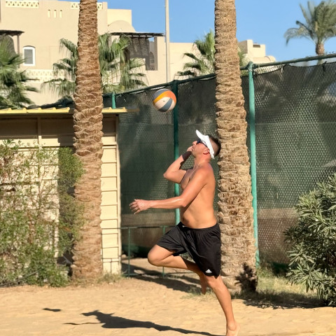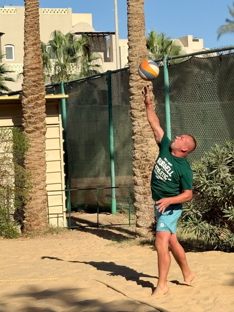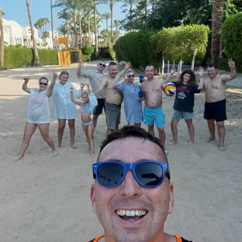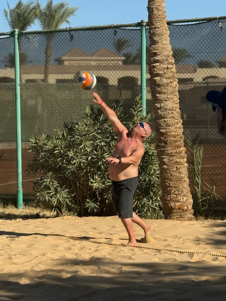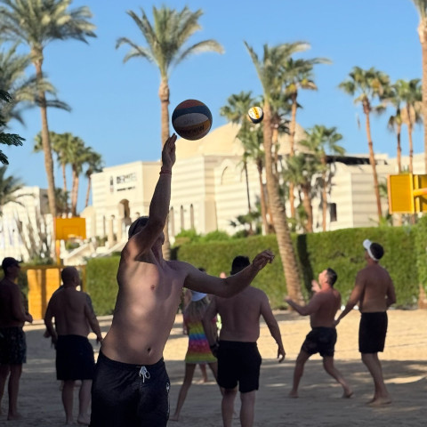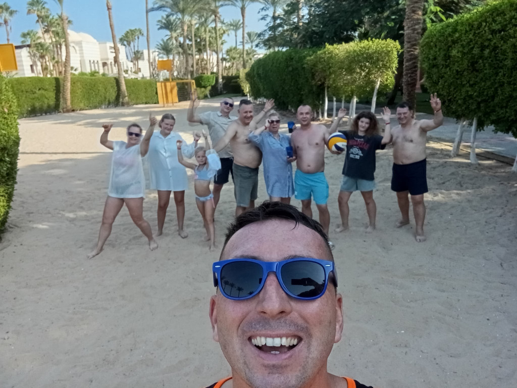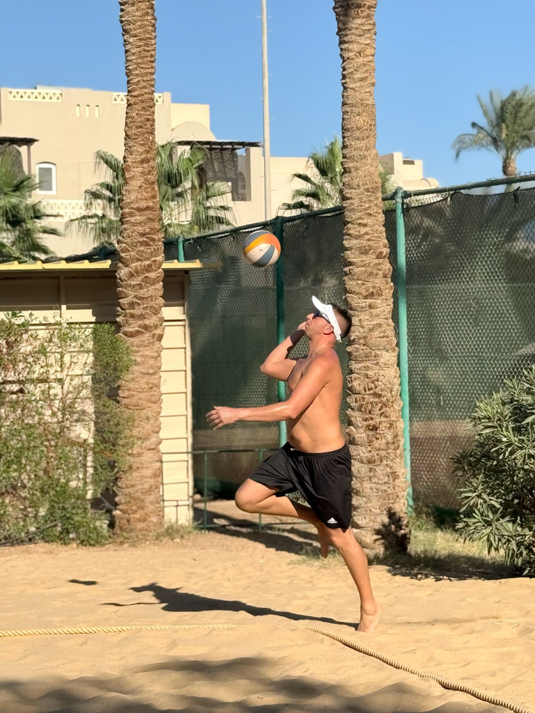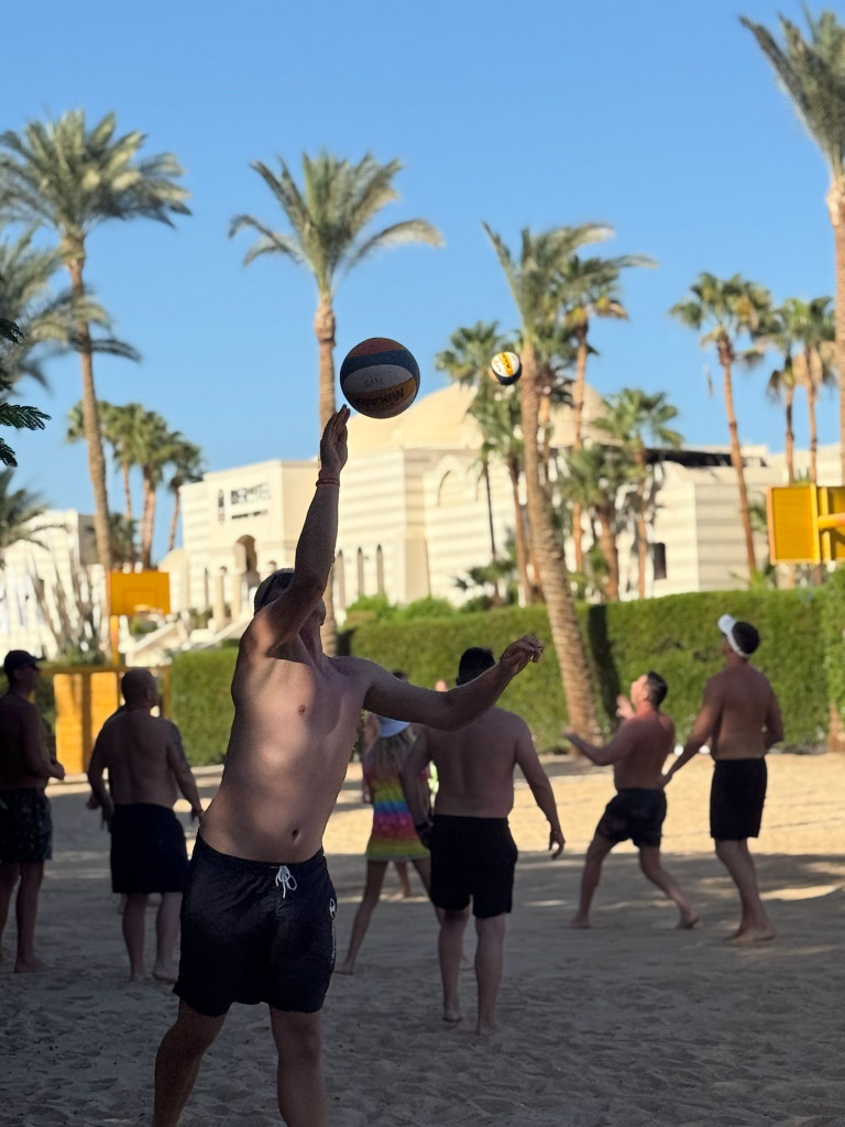 W wolnej chwili po dyżurze w recepcji spędzałem czas na plaży na boisku do siatkówki plażowej blisko baru all inclusive razem z naszymi Klientami. Mimo tego, że hotel położony jest ma pustyni, wieczorem oferuję sporo atrakcji, od występów lokalnych artystów, po animacje wieczorne jak i muzykę na żywo w wybranych miejscach.